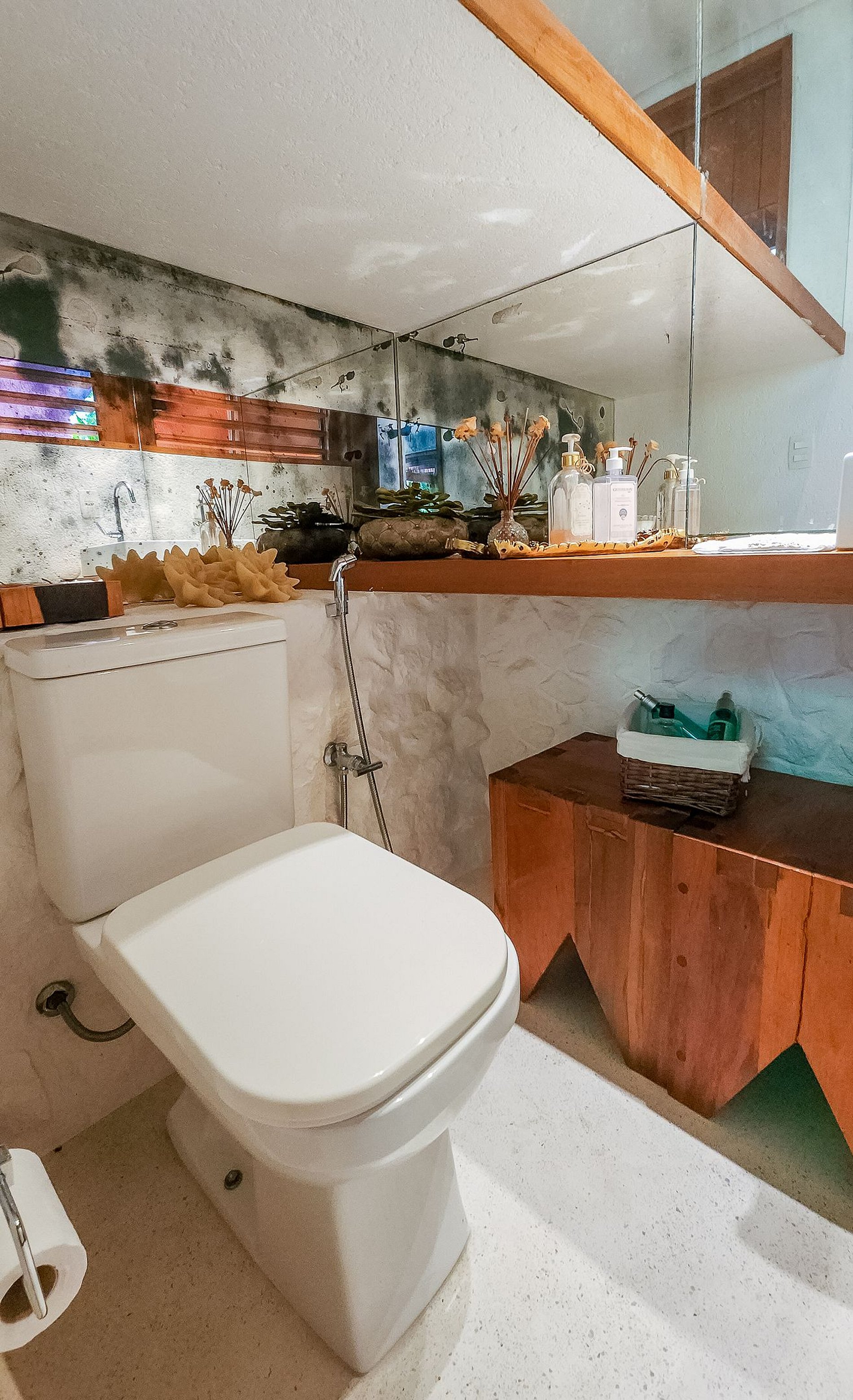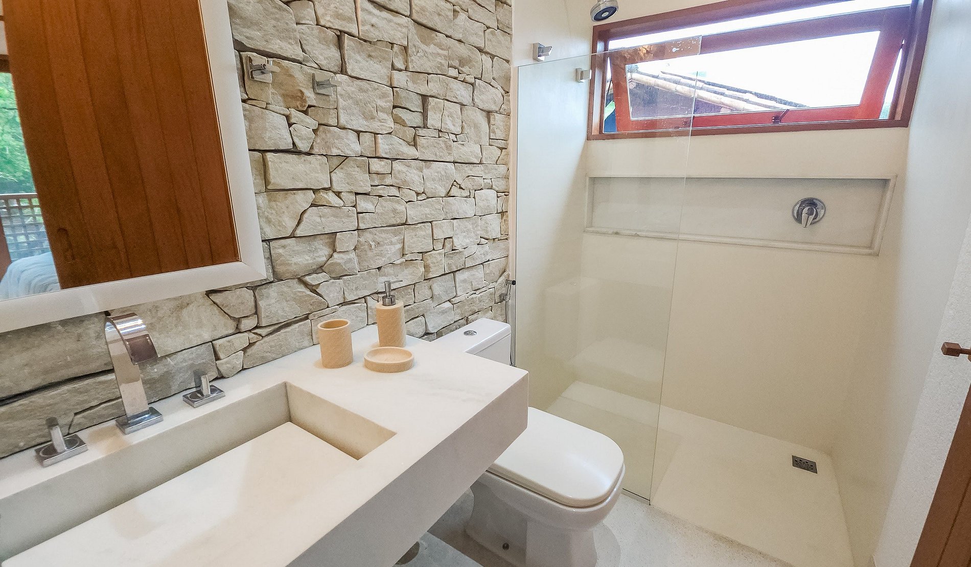 - 1 suíte no andar térreo com ar condicionado e varanda;