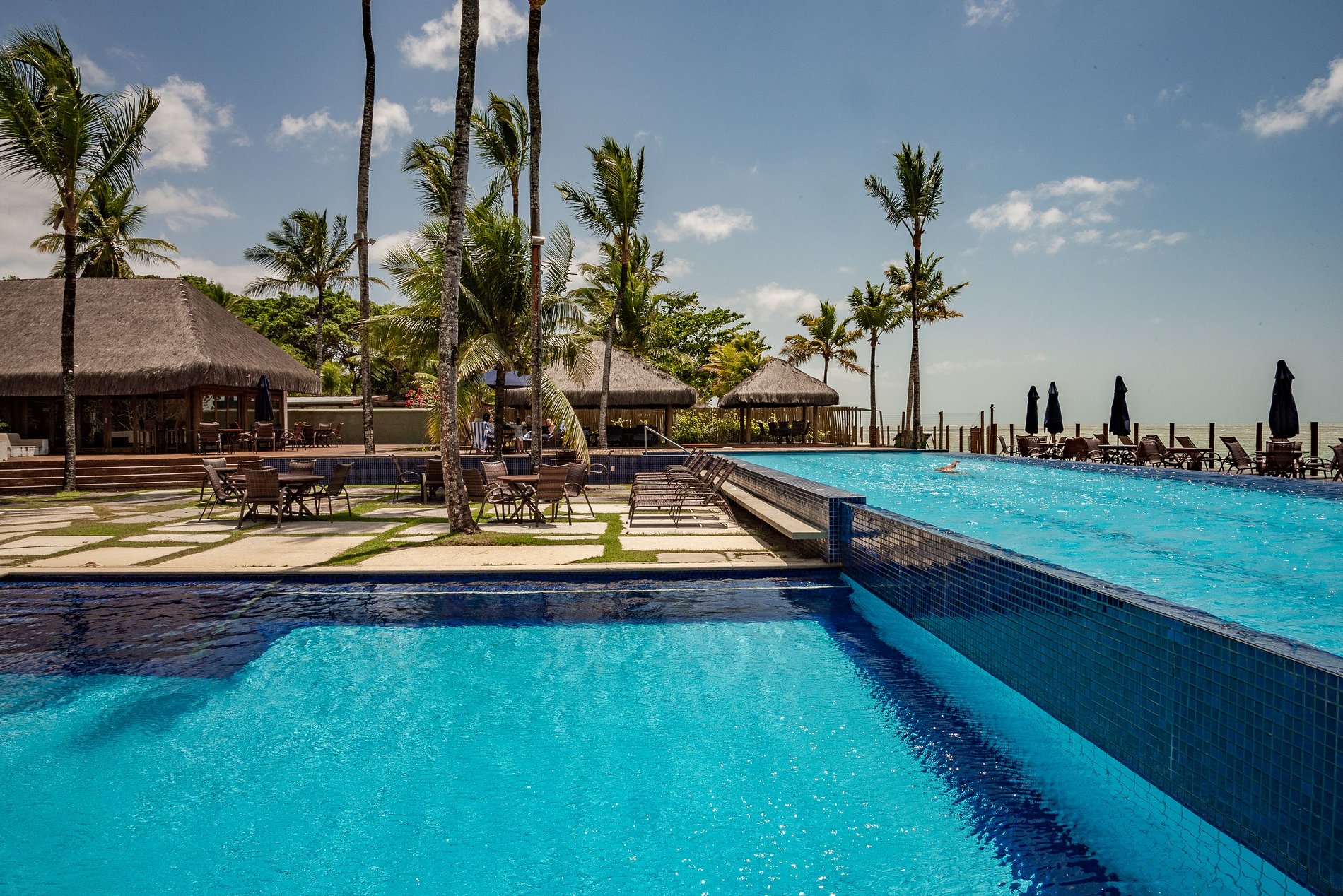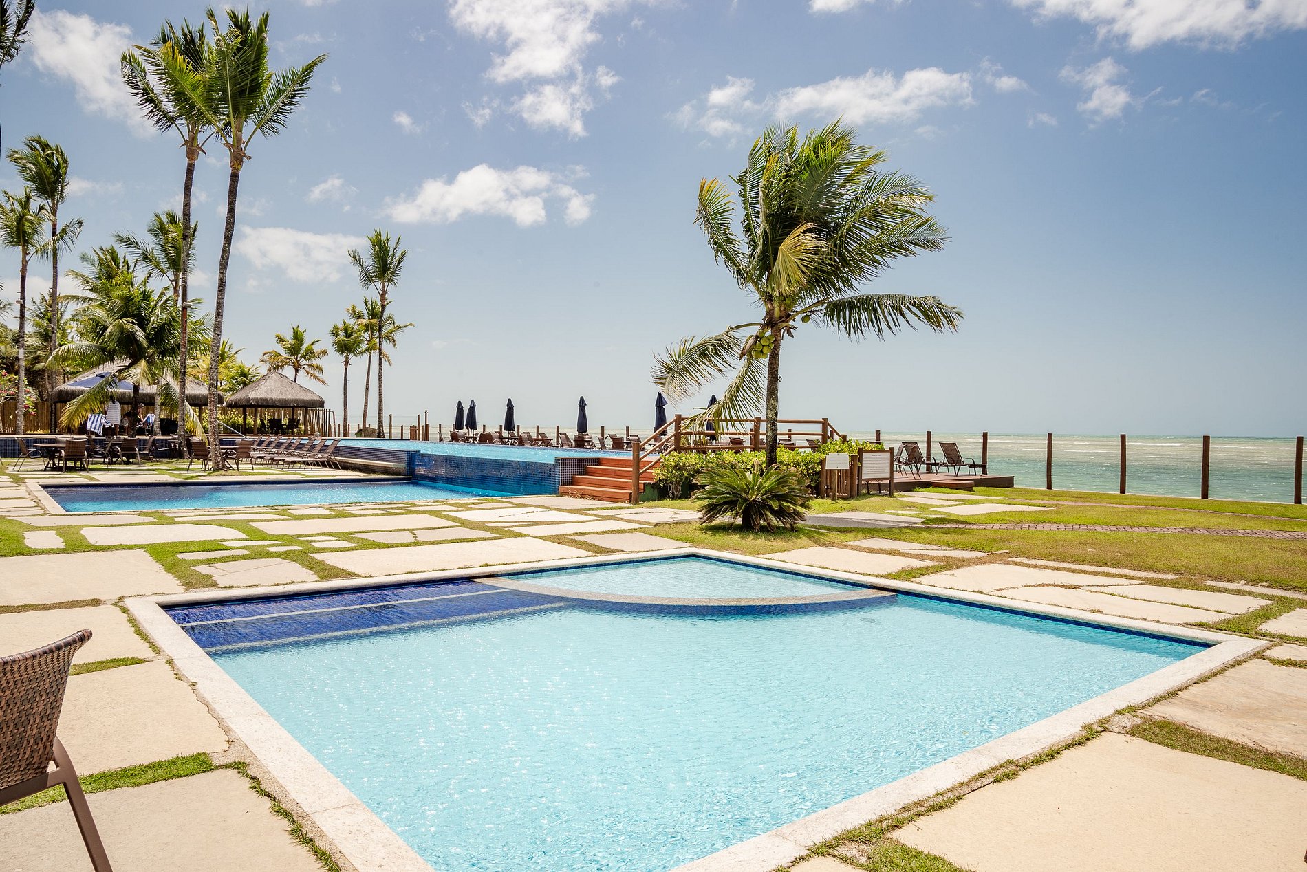 Temos portaria e vigilância 24 hs., acesso para praia com segurança e os hóspedes podem desfrutar da ótima área de lazer do condomínio, que conta com 3 piscinas ( adulto e infantil ) com vista para o mar, sauna, academia (temporariamente em reforma), playground, lounge de descanso, lounge de massagem e restaurante.